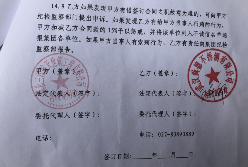 10月10日湖北三江航天建筑有限公司将武汉光谷激光科技园一期项目不锈钢消防水箱转包给我公司,并于湖北三江航天建筑有限公司签订《不锈钢水箱定制安装合同》。湖北三江航天建筑有限公司位于武汉市东西湖区柏泉农场商业街西正街54号,注册资金为5022.965万元万元,联系人是李四平。目前的经营范围是房屋建筑工程施工总承包(贰级);市政公用工程施工总承包(叁级);建筑防水工程专业承包(叁级);自有物资设备租赁、房屋租赁。合同约定付定金,工程材料进场安装完毕做试水合格后三天内付完余款,订立合同后,武汉舜德不锈钢水箱厂即按约定期限进场施工,采用包工包料含制作、安装、水箱基础槽钢及水箱配件含法兰(进水孔管、出水孔管、排污孔管、溢流孔管、透气孔管、检修孔、扶梯)以及运输、装卸、现场吊装到位,直至按装完毕。甲方要求不锈钢消防水箱焊接要保证无虚焊、无夹渣,焊条选用高于基材型号。表面光滑、无裂纹、焊缝无气泡,内衬结构排列要匀称,无毛刺。确保水箱各面保持垂直,垂直度不大于5%,水箱满载时箱壁无变形、无渗漏。水箱基础槽钢架及外梯稳定牢固,经久耐用。我公司于2019年10月15号如约完成该工程的施工,并于2019年15月18号试水合格。我们企业以过硬的质量、超前的技术、细致的服务做保障,真诚的为每一位用户服务,力争买一次产品,交长久朋友。着诚信务实、追求卓越、质量为本、科技兴业企业精神始终坚持以质量求生存,以信用求发展,以市场为导向,以诚信为原则的宗旨,赢得了广大客户的信誉和信任。