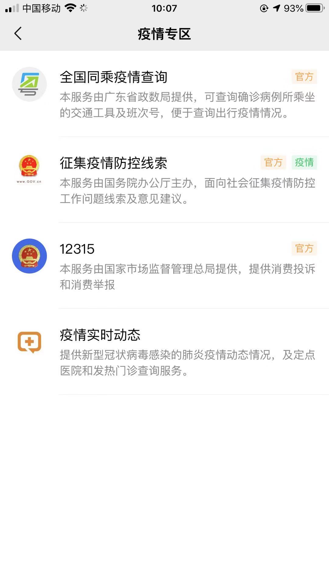微信新增功能:全国同乘疫情查询-征集疫情防控线索-疫情实时动态