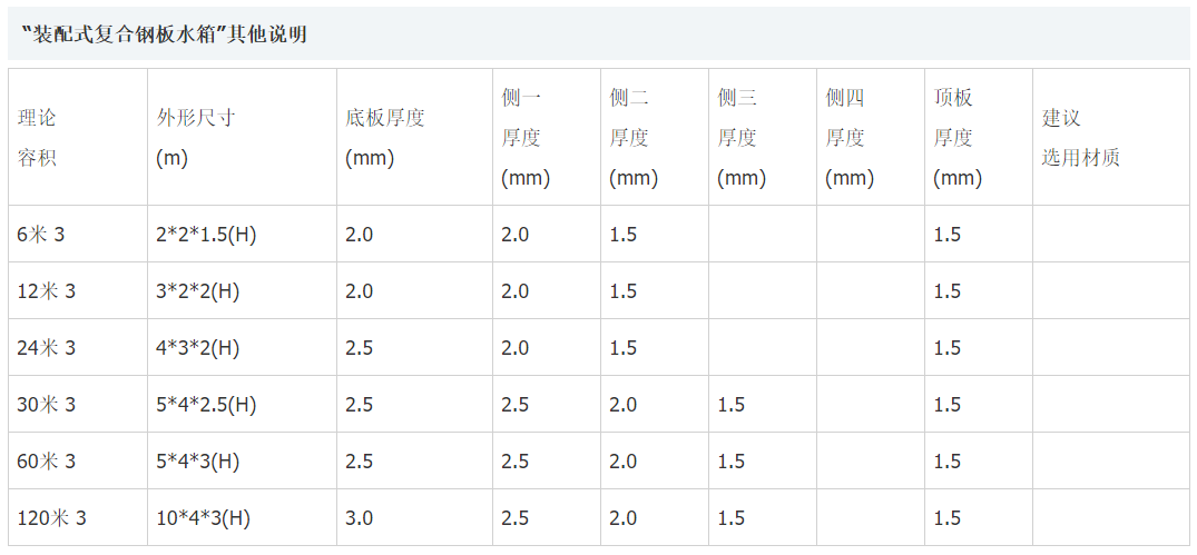 水箱厚度参照国标图集02S101要求制造,或按客户要求执行。