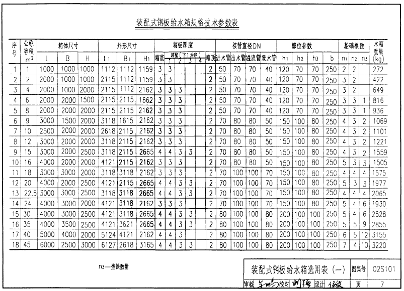 装配式不锈钢水箱图集选用表一: