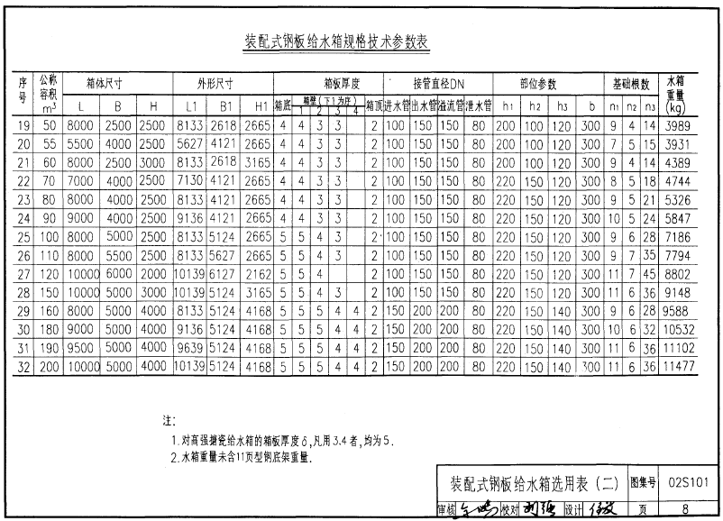 装配式不锈钢水箱图集选用表二: