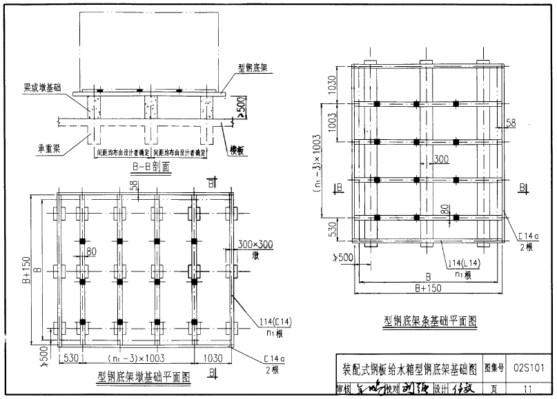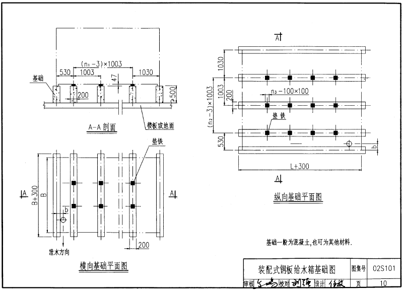 装配式不锈钢水箱图集底座型钢基础图: